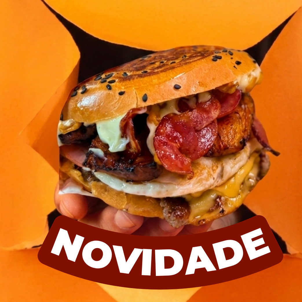 Pão brioche selado na chapa com maionese especial, smash suculento de 120g com queijo prato derretido, ovo frito, lombo canadense, bacon crocante, banana frita, calabresa crispy e milho tostado na manteiga, finalizado com alface americana e tomate fresco. Um X-Tudo completo, exagerado e simplesmente inesquecível.